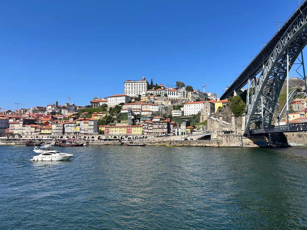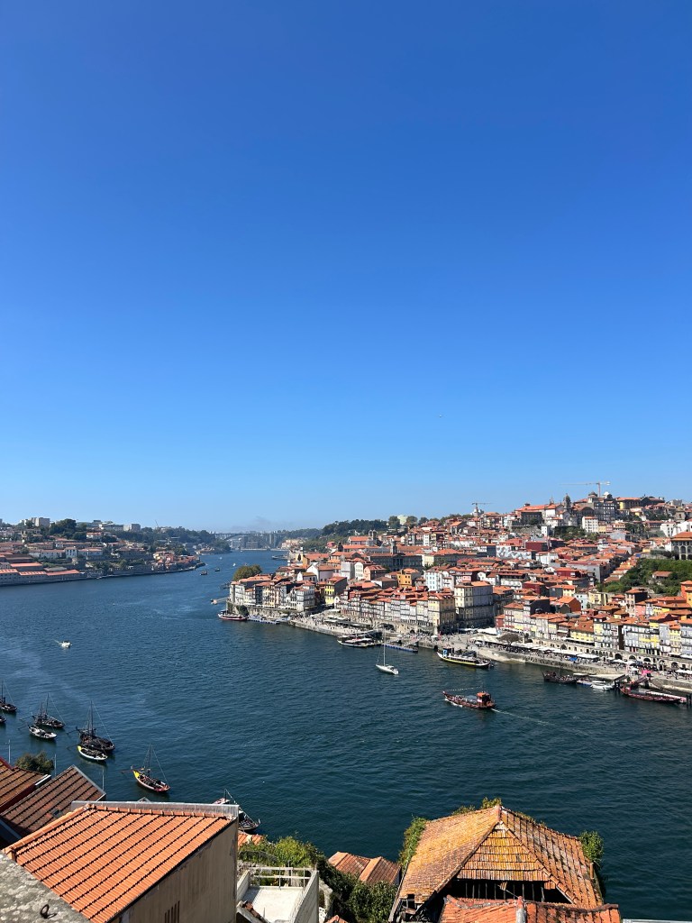 Poi sono partita per Porto, dove ho trascorso due giorni meravigliosi. Passeggiando lungo la riviera e il fiume Douro, tra le case colorate e le stradine acciottolate, ho scoperto scorci autentici che spesso sfuggono al turista frettoloso. Ogni angolo della città racconta una storia e invita a fermarsi un attimo per osservarla. Uno dei luoghi che ho amato di più è la zona del ponte, che si può attraversare a piedi. Da lassù, la vista è spettacolare: il fiume che scorre lento, i tetti rossi delle case, e quel vento tipico del Portogallo che ti scompiglia i capelli e sembra portarti via i pensieri. Alla fine del ponte, sulla destra, si trova un grazioso giardino, perfetto per una breve sosta immersi nel verde. Da lì si può scendere verso il fiume in due modi: attraverso una scalinata che porta direttamente lungo il canale, oppure prendendo la funivia, che regala un’ulteriore vista mozzafiato sulla città. Una volta giù, ci si ritrova a passeggiare serenamente lungo la riva, tra locali accoglienti e scorci pittoreschi, con la sponda opposta che si riflette nell’acqua e completa un panorama da cartolina.