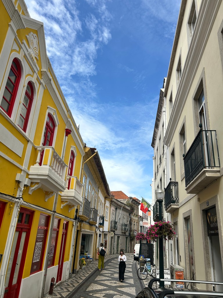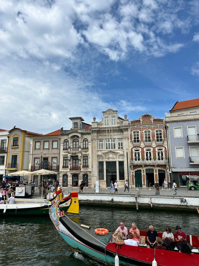 Il viaggio sì è poi spostato a Aveiro e Costa Nova . Aveiro, spesso chiamata la “Venezia del Portogallo”, è una cittadina piccola, accogliente e a misura d’uomo. I suoi canali, attraversati dai tradizionali moliceiros colorati ( barche tipiche), creano un’atmosfera vivace ma al tempo stesso rilassata. Il centro è raccolto e piacevole da esplorare a piedi, con una piazza centrale molto carina, circondata da ristoranti e caffè dove è facile fermarsi per un pranzo all’aperto o semplicemente per godersi l’ambiente.
